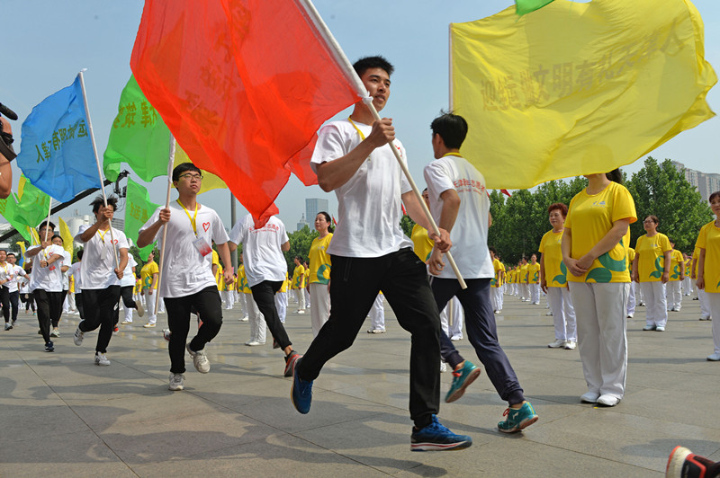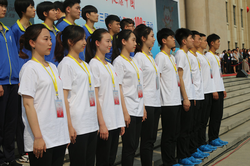 5月19日上午,第十三届全运会倒计时100天活动在天津大礼堂举行。全运会形象大使、公安干警、医务人员、志愿者、运动员和市民代表等约2000人在天津礼堂前广场,舞动全运旗帜、感受全运脉搏、聆听全运脚步,积极营造“当好东道主、办好全运会、喜迎十九大”的浓厚氛围,调动全市人民关注全运、参与全运、服务全运、奉献全运的热情。我校123名全运会志愿者代表参加了此次倒计时活动,并有10名学生与中国女排运动员、天津女排队长魏秋月共同拍摄了"绿色全运 法治同行"法治宣传公益广告。(团委 供稿)